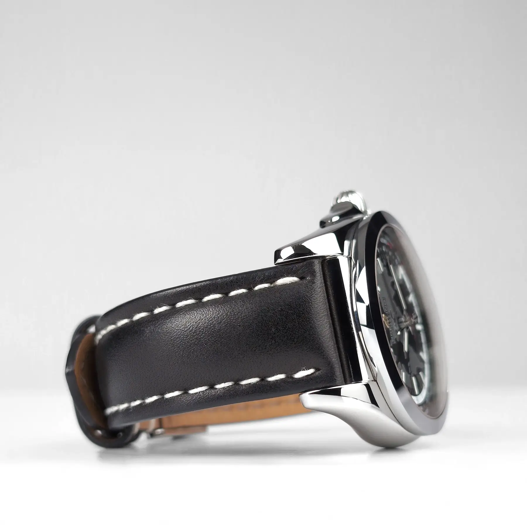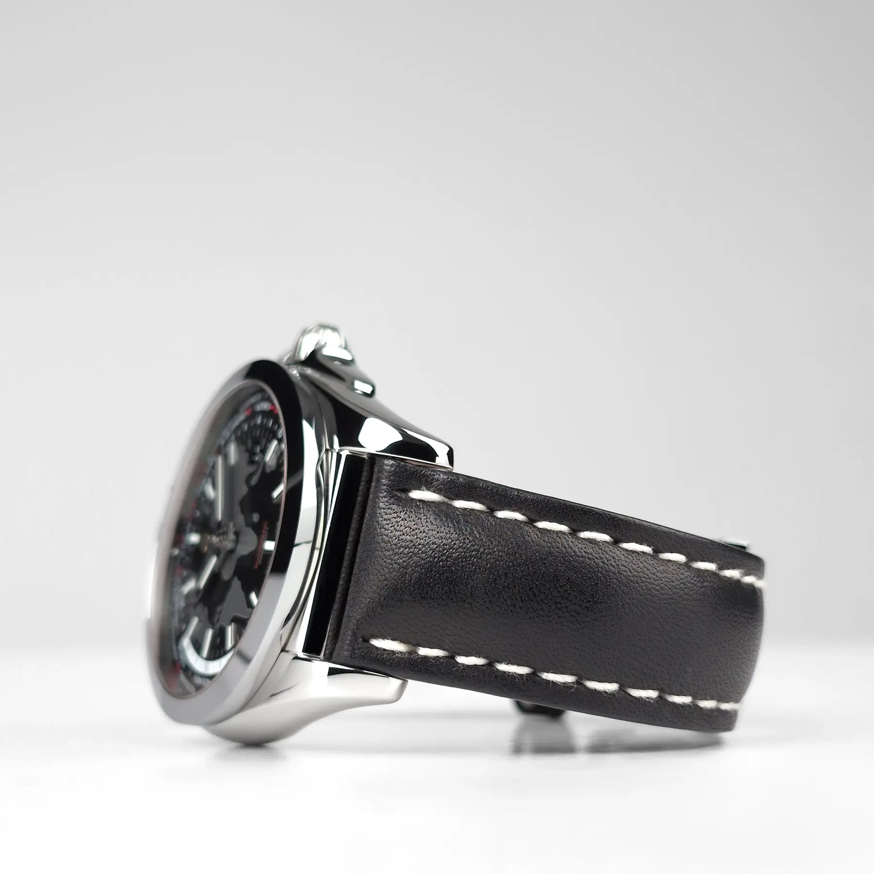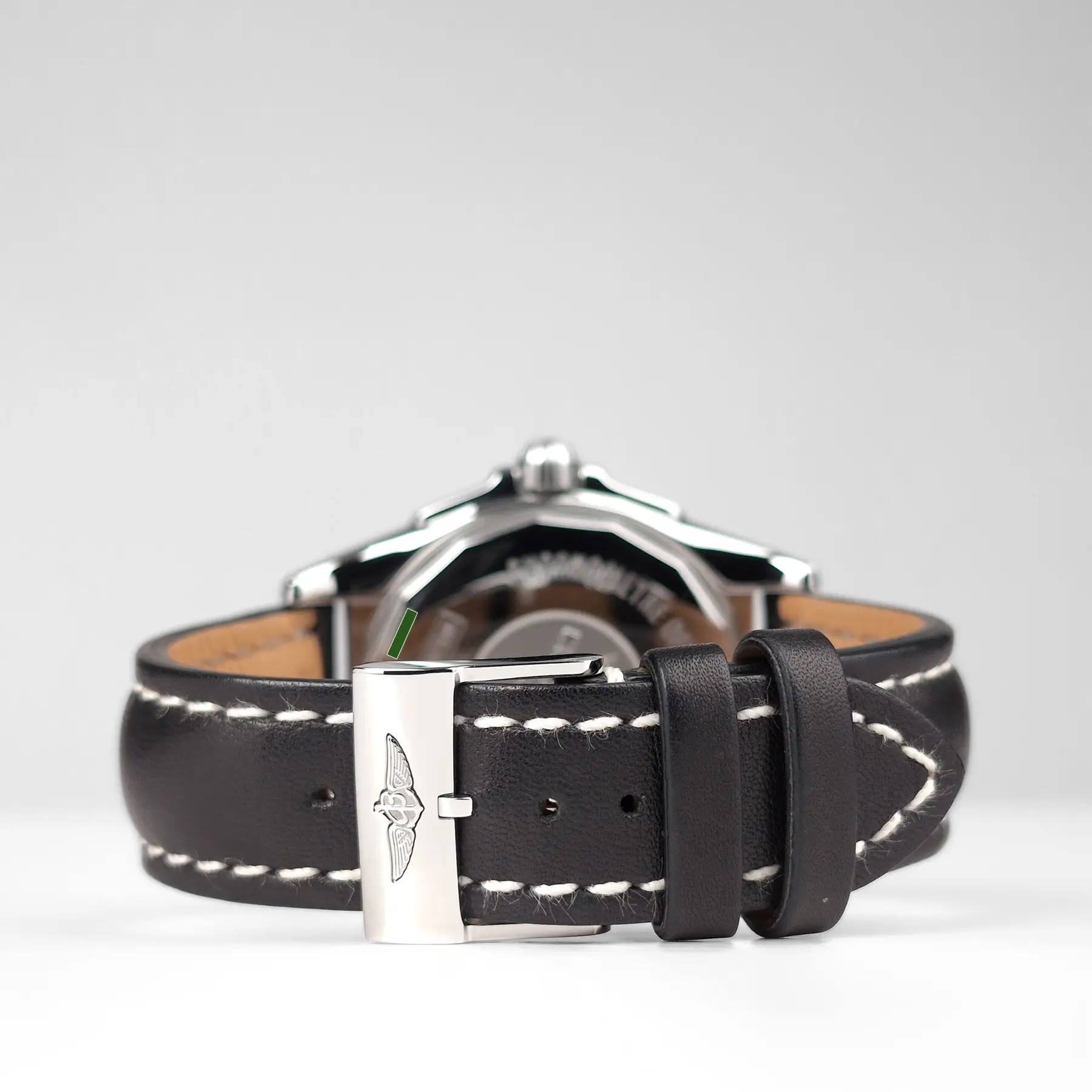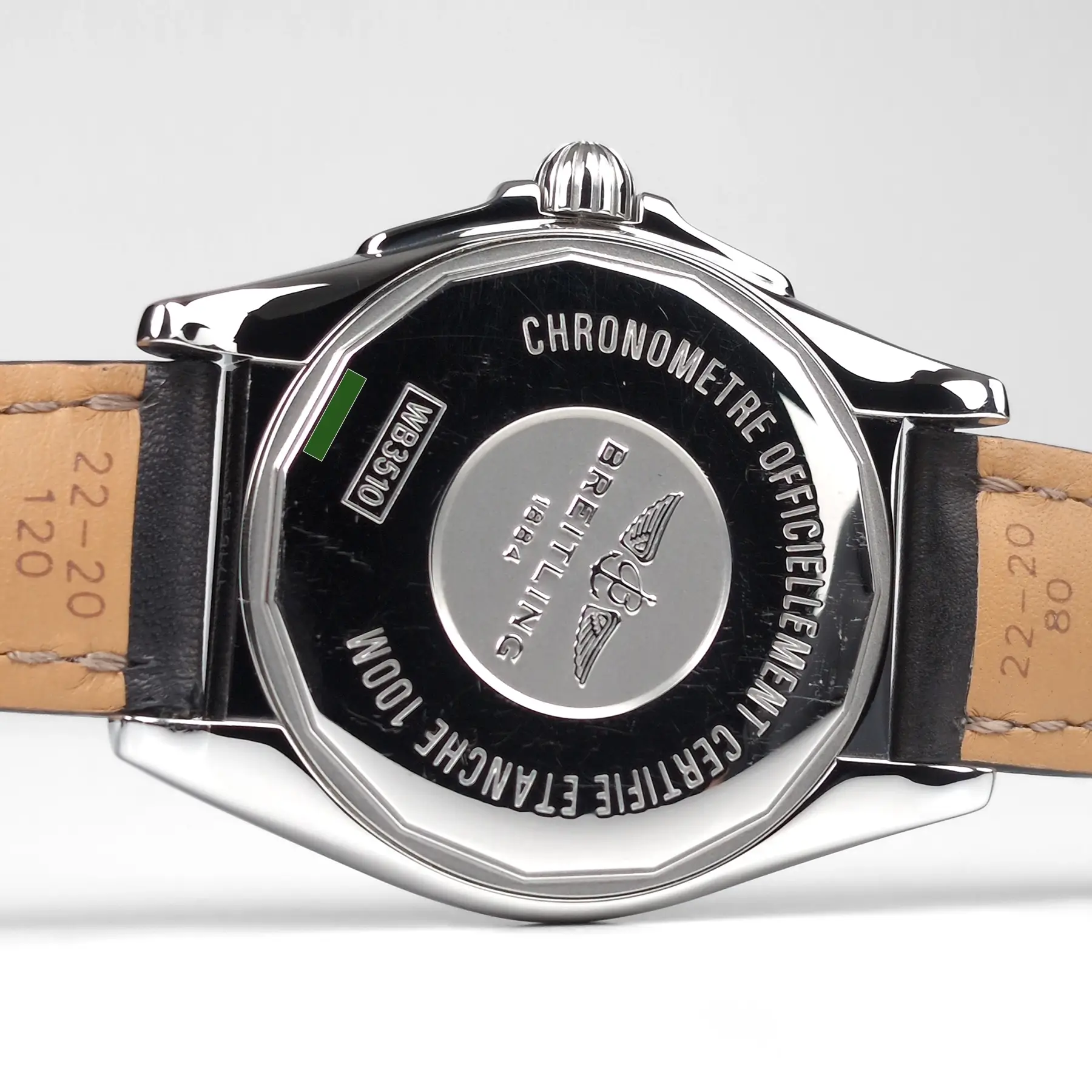 COSMETIC CONDITION: All of the photos of this preowned watch are of the actual watch being sold and accurately reflect how this watch looks in person. These photos have not been edited in any way to reduce or remove the appearance of any scratches or imperfections. Under close inspection there are some very faint scratches on the case, bezel, and clasp, and some light scratches on the case back. There are no imperfections on the crystal or dial. The original Breitling strap is in excellent preowned condition and fits a wrist up to 8 1/2”.