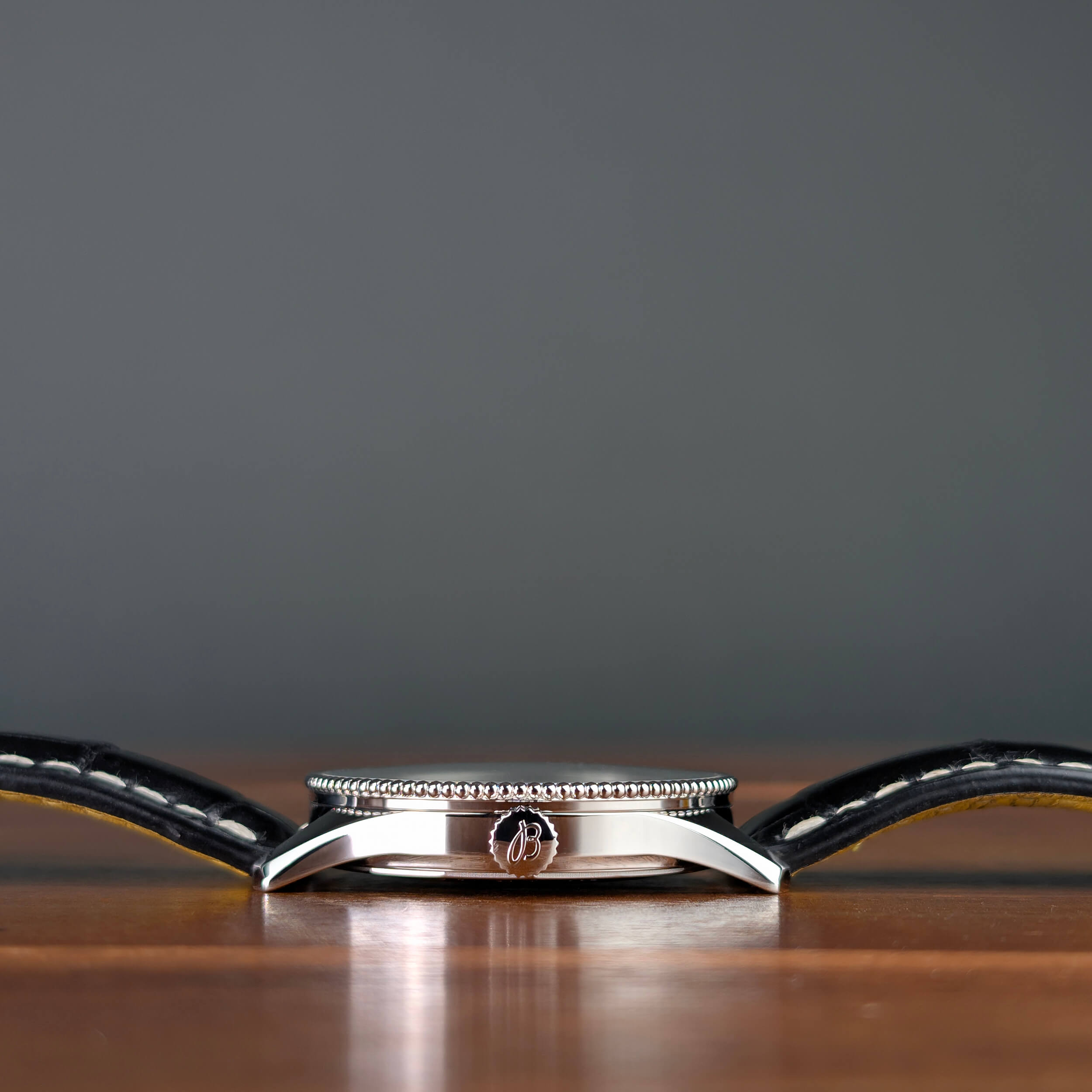 ACCESSORIES: This watch is a complete set. Included with this watch are it Breitling box, Breitling guarantee card, operating manual, travel pouch, and additional Breitling strap. Also included with this watch is an Insurance Appraisal and Certificate of Authenticity which will be performed by our in-house NAJA certified watch appraiser on the date of purchase and will feature your name as well as all of the relevant details regarding this watch.