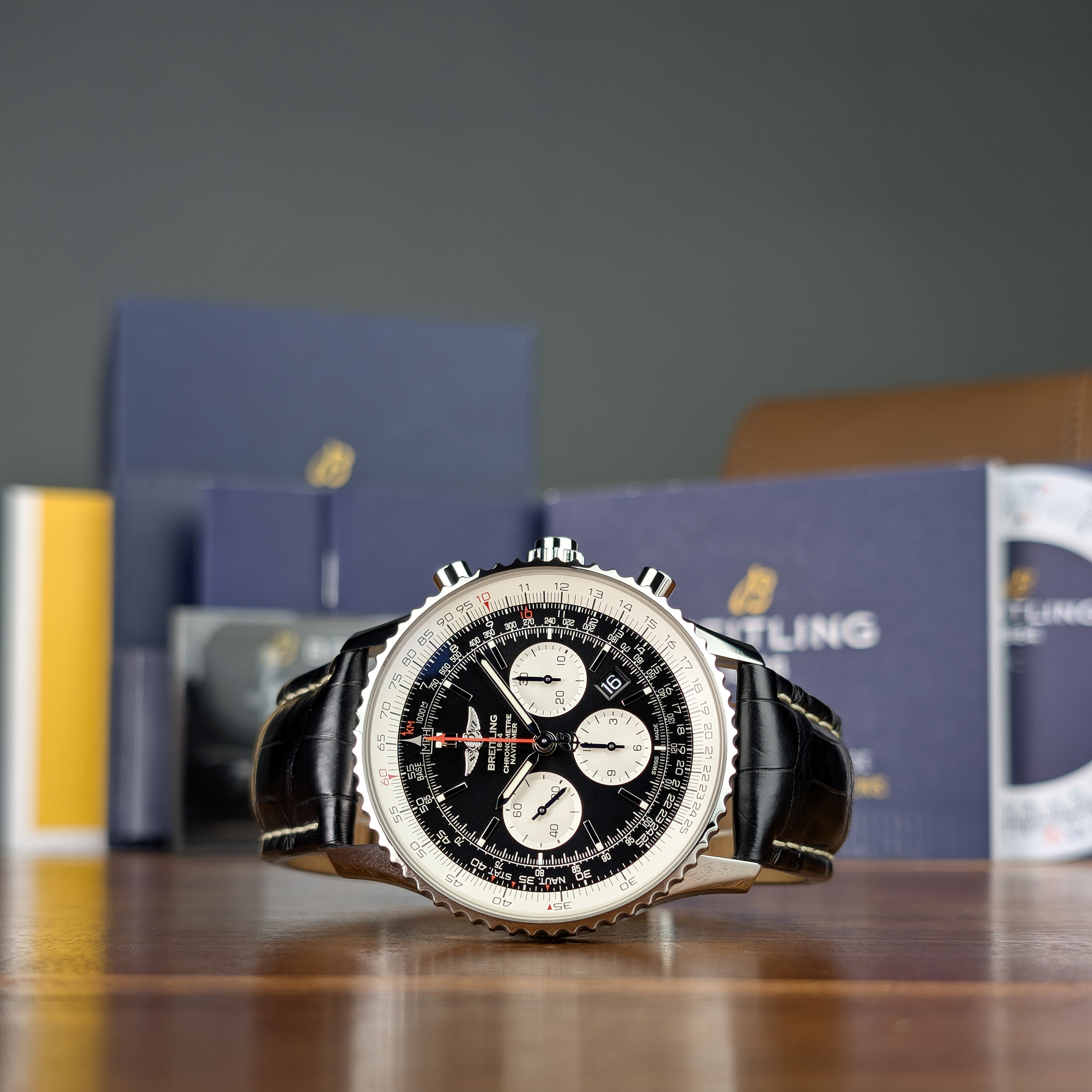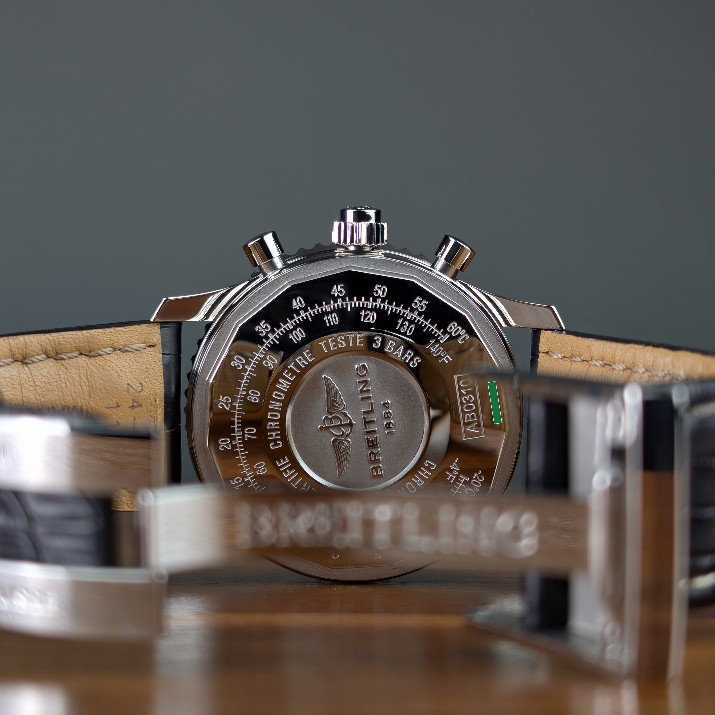 ACCESSORIES: This watch is a complete set. Included with this watch are its Breitling display box with outer box, Breitling guarantee card, operating manual, warranty/service booklet, chronometer certificate, book/card sleeve, and slide rule with instructions. Also included with this watch is an Insurance Appraisal and Certificate of Authenticity which will be performed by our in-house NAJA certified watch appraiser on the date of purchase and will feature your name as well as all of the relevant details regarding this watch.