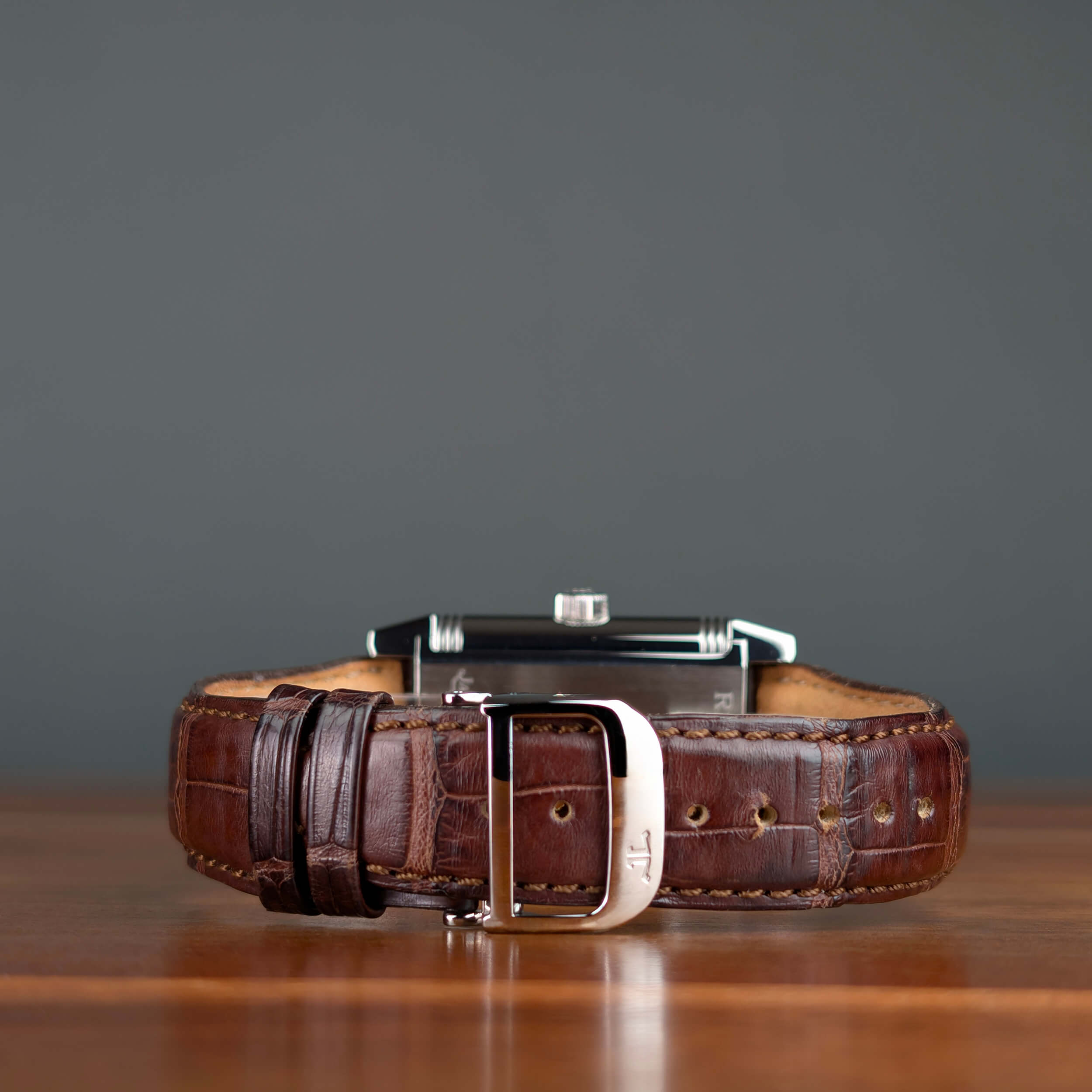 CONDITION: All of the photos of this preowned watch are of the actual watch being sold and accurately reflect how this watch looks in person. These photos have not been edited in any way to reduce or remove the appearance of any scratches or imperfections. The original Jaeger-LeCoultre brown alligator strap in excellent preowned condition and fits a wrist up to 8 1/2″.
